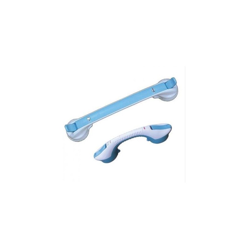 Nuestros asideros Strong se pueden instalar en cualquier lugar para su seguridad sin tener que taladrar agujeros antiestéticos en sus azulejos o paredes. Pueden instalarse en pocos segundos sin necesidad de herramientas. Sus gruesas ventosas de goma le garantizan una resistencia muy alta. Ideales para sus viajes y excursiones. Presione las dos palancas laterales y se fija muy bien sobre todas las superficies lisas (azulejos, gres, cerámica, cristal, pintura lacada, superficie de PVC de las cabinas de ducha). El asidero Strong es extensible en longitud hasta 10 cm según necesidades de los azulejos de su pared. Largo 44 a 56 cm. Disponible en otras dos longitudes diferentes.