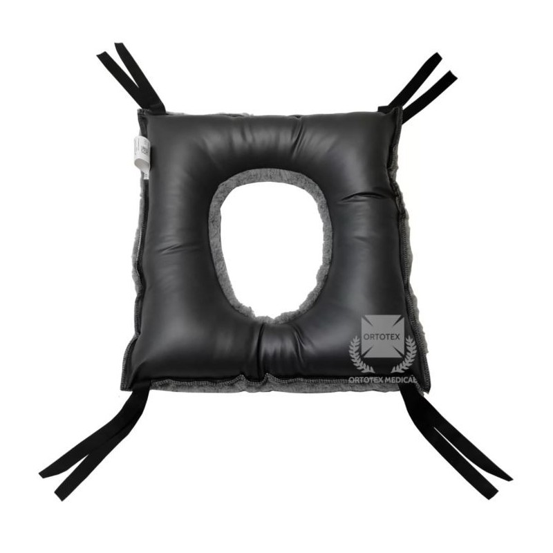 Fabricado con un tejido de borreguito sintético gris y poliuretano bielástico. Este cojín utiliza una combinación de materiales de alta calidad para reducir tanto la presión, como la fricción y la humedad, factores clave en la formación de escaras. El agujero central proporciona un alivio adicional en el área del coxis, ayudando a prevenir la aparición de úlceras y proporcionando un confort óptimo durante períodos de descanso prolongados.
