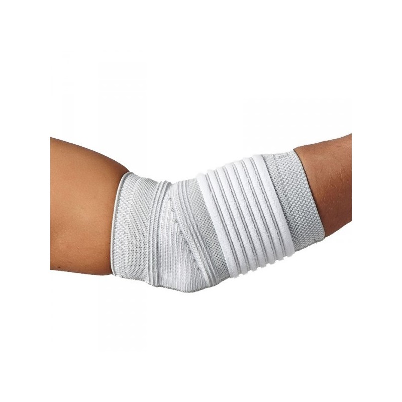 Diseñada para una adaptación cómoda en el brazo y una compresión eficaz de la articulación del codo. Su doble banda de cierre permite regular la compresión de forma individualizada. Talla única: contorno 17-33 cm.