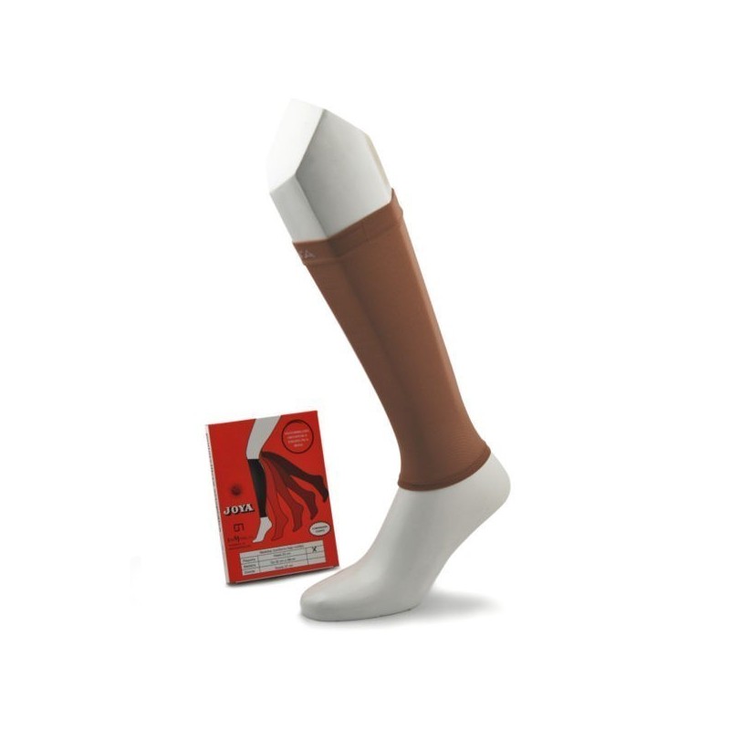 Pantorrillera elástica con un diseño anatómico. Apropiada para personas con tendencia al edema, varicosis secundária, artrofia blanca, dermatoesclerosis, elefantiasis, ligeros síntomas de linfoedemas, para procesos de recuperación de úlceras graves… En color beige.