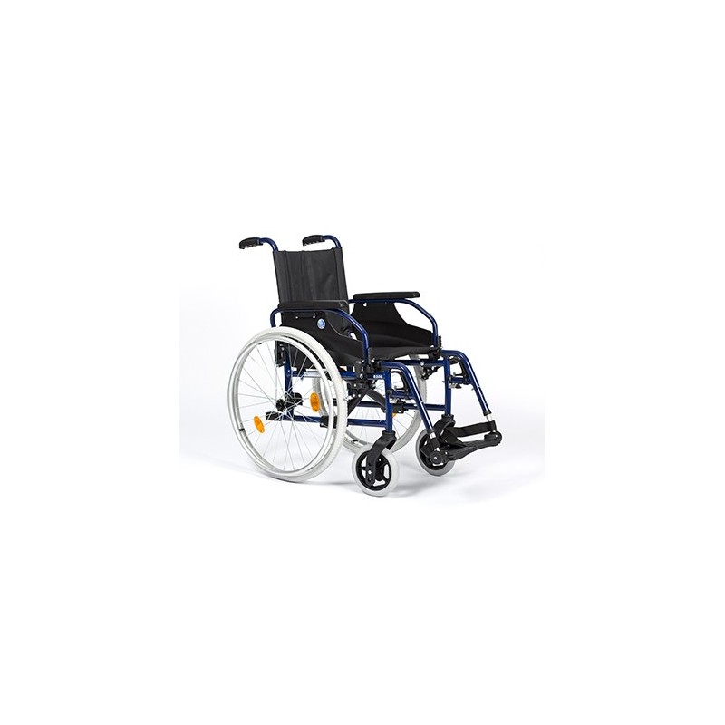 JAZZ S50 silla estándar de acero. La silla JazzS50, sin renunciar a los estándares de calidad más exigentes de la gama Vermeiren, es la solución más económica. Tapicería en nylon de fácil limpieza. Empuñaduras ergonómicas. Reposabrazos y reposapiés extraíbles y abatibles. Altura de asiento regulable en dos posiciones. Ruedas traseras extraíbles, con eje de extracción rápida “Quick release” .