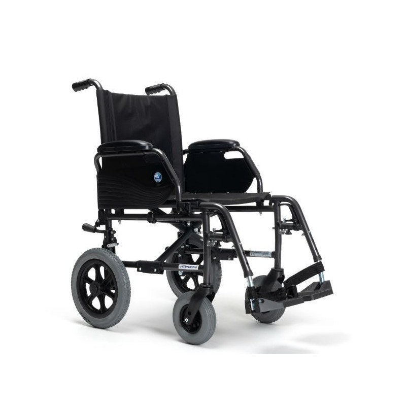JAZZ S50 silla estándar de acero. La silla JazzS50, sin renunciar a los estándares de calidad más exigentes de la gama Vermeiren, es la solución más económica. Empuñaduras ergonómicas. Reposabrazos y reposapiés extraíbles y abatibles. Altura de asiento regulable en dos posiciones.