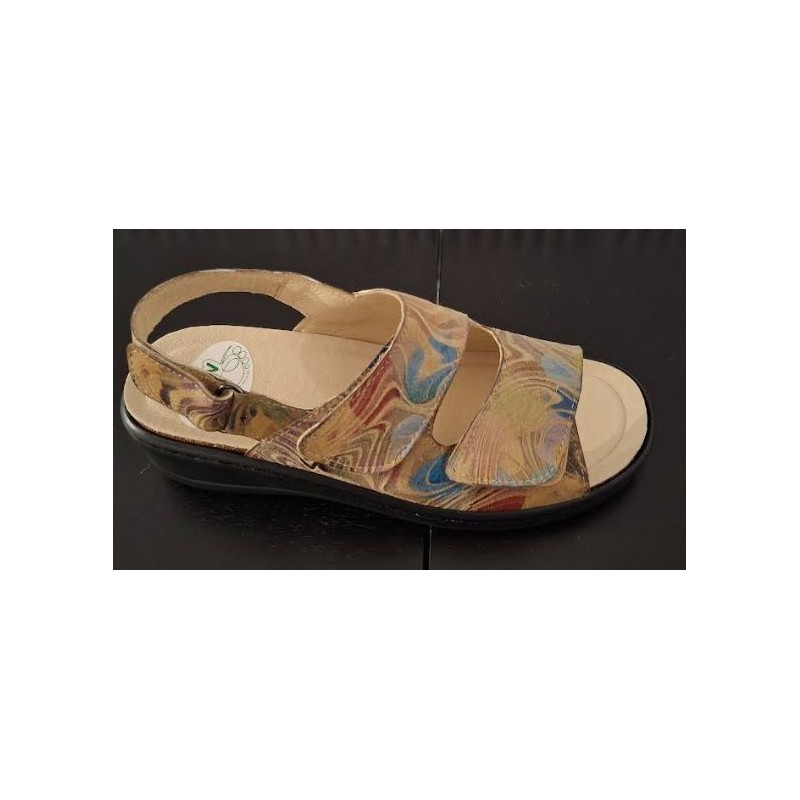 Sandalia Mabel fabricada en piel con tres velcros y suela antideslizante. Máximo confort para los pies más delicados. Este calzado esta pensado para personas con pies inflamados con velcros adaptables.