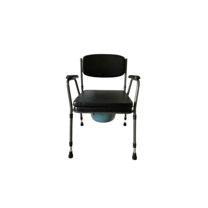 Esta silla tapizada con inodoro desmontable es un producto de apoyo para el aseo. Como es regulable en altura, puede utilizarse directamente sobre el inodoro haciendo funciones de elevador de WC. Asimismo, al disponer de cubeta, se puede usar en cualquier parte del hogar.