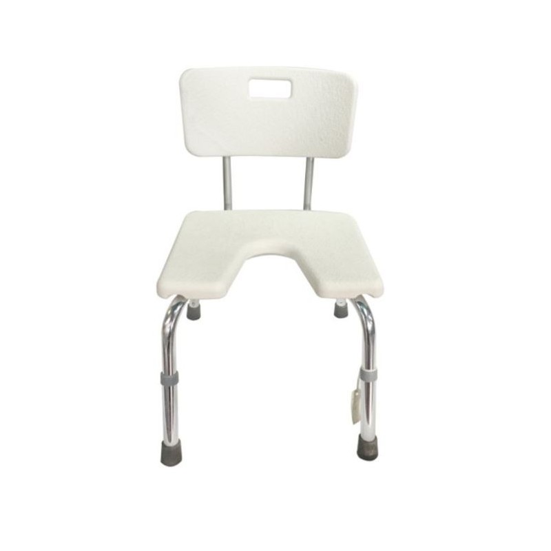 Esta banqueta de baño tipo U con respaldo es una ayuda para la higiene personal. Está diseñada para las personas que necesitan un extra de seguridad y apoyo durante el aseo en la ducha, proporcionando autonomía e independencia. La forma de U facilita la higiene íntima.