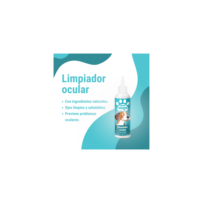 Neo Dogs Limpiador Ocular es un producto natural diseñado para limpiar la zona ocular de tu perro de manera segura y eficaz. Elimina las manchas secas y legañas causadas por secreciones lagrimales, previniendo posibles problemas oculares como la conjuntivitis.
