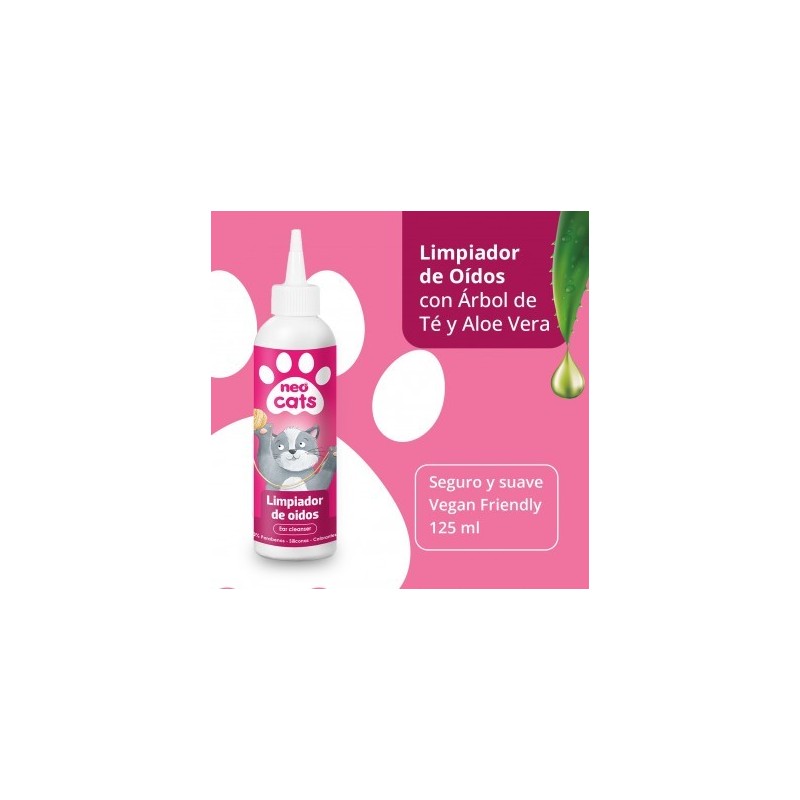 Neo Cats Limpiador de Oídos es una solución natural, especialmente formulada para la limpieza del conducto auditivo externo de los gatos. Sin alcohol ni ingredientes irritantes, este limpiador respeta la delicada piel de tu gato mientras previene y controla la otitis externa.